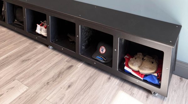 NEW! Introducing our versatile Portable Cubby Storage Bench, expertly designed to provide both convenient storage and comfortable seating for various settings, including arenas, schools, offices, and residential spaces. Crafted with durable 3/4″ HDPE this storage solution offers large individual storage slots, easy cleaning, and is built to last and look great. Maneuverability is made stress-free as this product also features sturdy caster wheels for effortless transporting. Move it, where you need it!