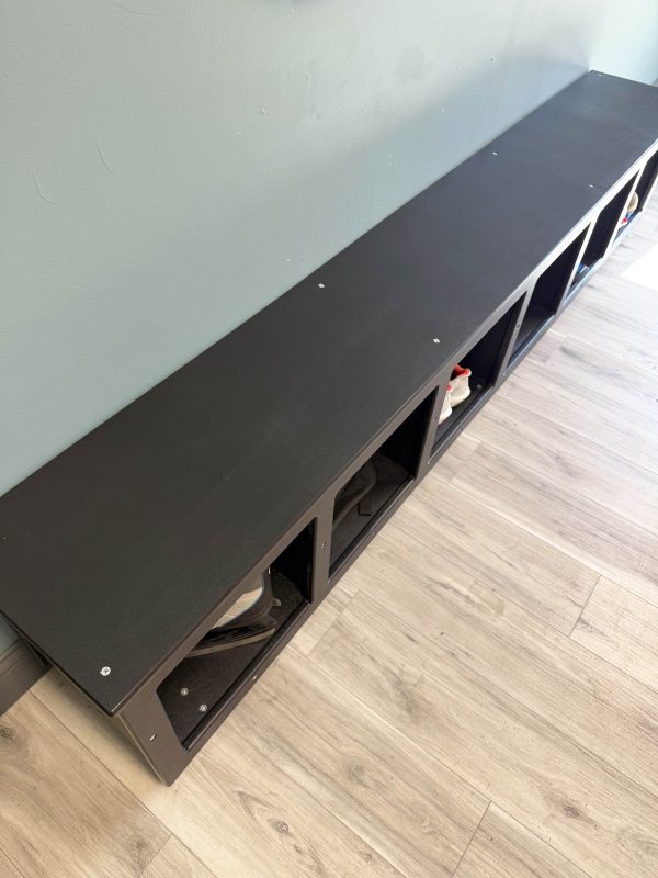- (SKU 302-0200) – 8′ dimensions: 96″ Wide x 18-1/4″ Tall x 14″ Deep bench, (6) Cubby Slots, (6) Caster Wheels, 150 lbs.