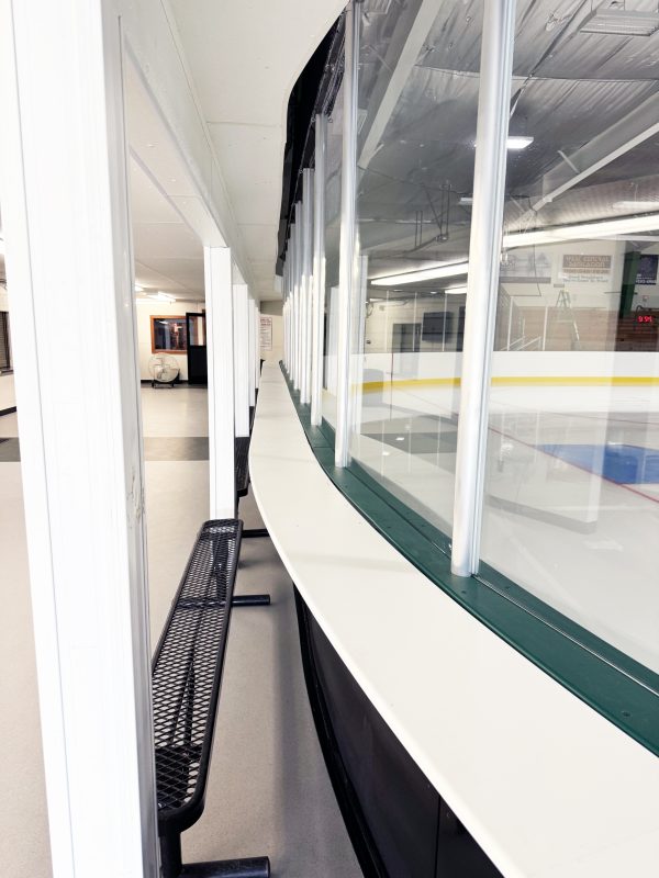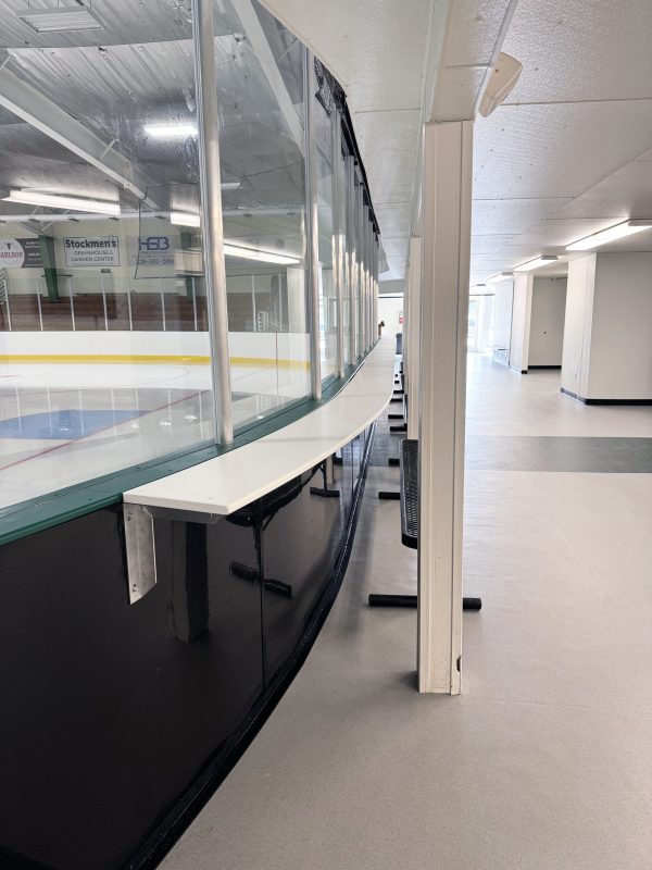 Your fans and visitors can enjoy practices and games up close! Rink side table tops provide an additional level of sitting and convenience. Table tops are constructed with 1″ HD polyethylene shelving and zinc plated steel angle supports. Custom sizes and colors are available. Sold per sq ft.